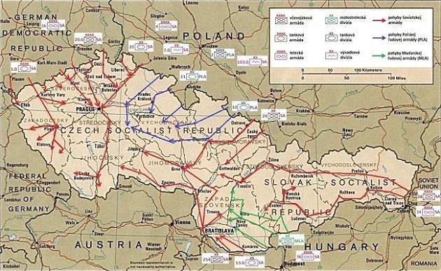 On the night of 20–21 August, Eastern Bloc Armies from four Warsaw Pact countries, the Soviet Union, Bulgaria, Poland and Hungary, invaded Czechoslovakia (ČSSR) to bring an end to that country’s brief period of political liberalization called the Prague Spring.