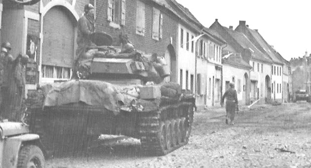 On 5 March 1945, M24s of the 4th Cavalry Reconnaissance Squadron rolled down the Kölner Strasse in Dormagen. It is not known if the engagement with the two panzers occurred before entering Dormagen or after leaving Dormagen.