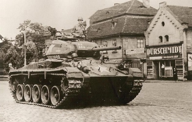 Deliveries of production M24s began in April 1944 and new M24s were quickly issued to armored units in training for deployment to Europe. By the summer of 1944, production M24s were delivered to light tank units in Europe to replace the 37mm armed M5 and M5A1 Stuart tanks. The first 34 M24s reached Europe in November 1944 and were issued to the US 2nd Cavalry Group (Mechanized) in France. These were then issued to Troop F, 2nd Cavalry Reconnaissance Squadron and Troop F, 42nd Cavalry Reconnaissance Squadron which each received 17 M24s. During Unternehmen Wacht am Rhein (“Operation Watch on the Rhine” AKA the Battle of the Bulge) in December 1944, these units and their new tanks were rushed to the southern sector; two of the M24s were detached to serve with the 740th Tank Battalion of the US 1st Army.