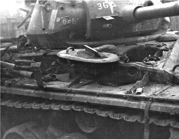 | Guntz | POSEN | Bazooka hit in turret on March 24 while securing road to ‘Isabelle’ but was operational until the end. |