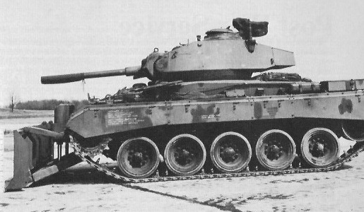 Late M24s with the reinforced bulldozer mounting pads on the front were able to be fitted with the M3 Bulldozer blade. There was little service use of the bulldozer kit by operational M24 units.