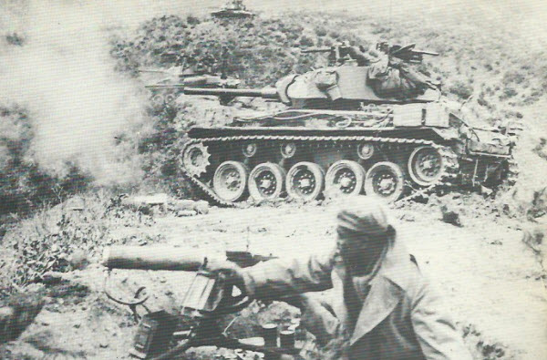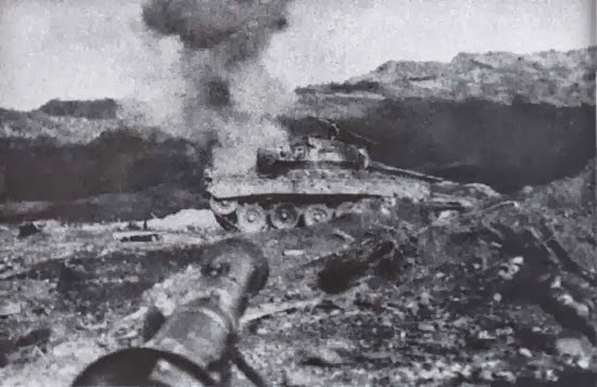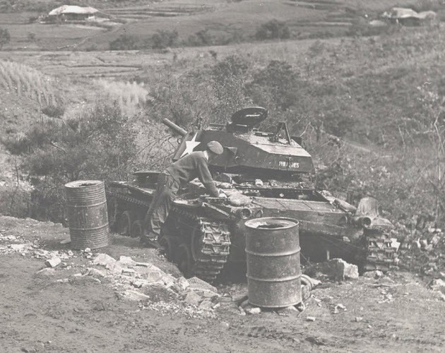 This M24 took a Viet Minh bazooka hit and is bellowing smoke. The Viet Minh received bazookas and 57mm recoil-less rifles from the Chinese who captured the weapons and ammo from UN forces in Korea.