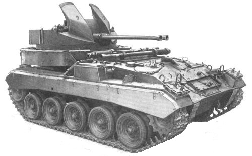 A lengthened M24 hull with engine moved to the center and twin 40mm Bofors anti-aircraft guns (336 rounds) mounted at hull rear. In August 1944, 904 were ordered but only 285 were built by the end of the war. The M19A1 had an auxiliary engine and generator to operate the 40mm guns when the main engine was shutdown, and fixtures for carrying two spare gun barrels. It saw service in the Korean War along side the M16 half-track MGMC and the 40mm guns were especially effective against Chinese mass infantry charges.