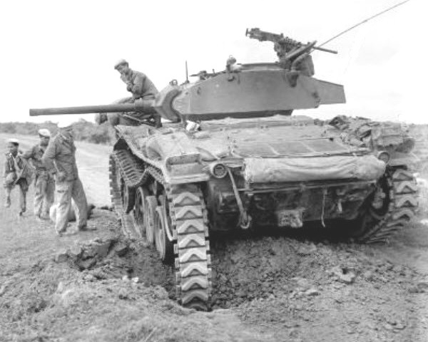 At the outbreak of war in 1965, Pakistan had about 15 armoured cavalry regiments, each with about 45 tanks in three squadrons. Besides the M47/M48 Pattons, there were about 200 76mm M4 Shermans, 150 M24s and a few independent squadrons of M36B1 tank destroyers. Most of these regiments served in Pakistan’s two armoured divisions, the 1st and 6th Armoured divisions. The Indian Army at the time had 17 cavalry regiments with 164 AMX-13 light tanks and 188 Centurions. Both sides took heavy losses.