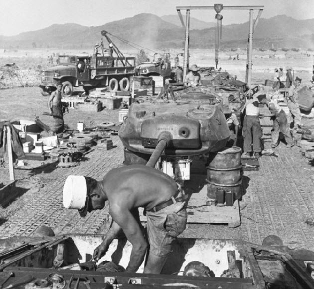 During 1964, it was decided to replace the aging M24s in ARVN armored units with newer M41 Walker Bulldogs and the M24s gradually disappeared from the cavalry squadrons. A number of M24s were later used to guard important installations as static pillboxes with a fixed perimeter defense system. In this role, the M24s had their engine removed. This was done for two reasons; first there was a shortage of spare parts to keep them running and the second was to prevent them from being used in a possible coup.
