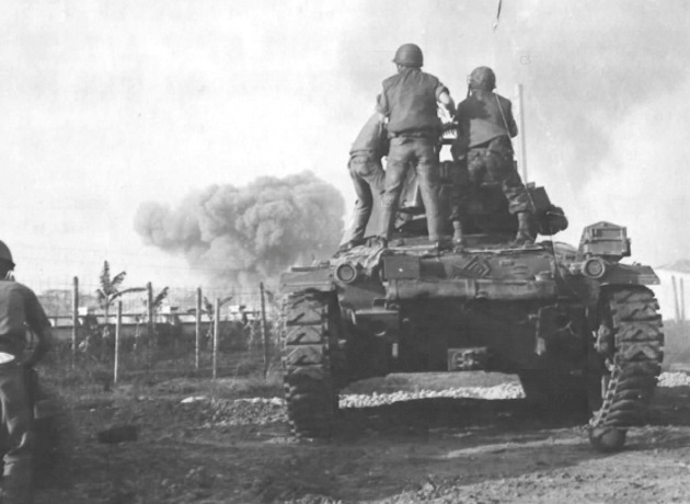 USAF security police and an VNAF M24 search for VC sappers during the Tet assault on Tan Son Nhut air base on 31 January 1968.