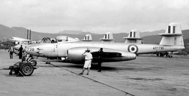 Although the RAAF Mustangs were doing much more ground support than air defense, the Australian government wanted the 77th Squadron long term role to be air defense – a role which the MiG-15 totally outclassed the Mustang. They wanted to replace the Mustangs with jets as soon as possible. Australia already had a jet, the single engine De Havilland Vampire but it was an older first generation design and was quickly ruled out. Their first choice was to purchase the US swept wing F-86 Sabre but because of the long waiting list they would not receive them until 1954.