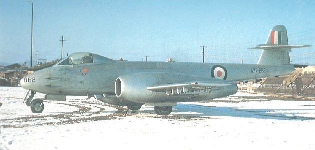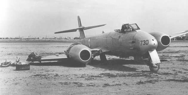 A77-730 made a crashed landing at Kimpo on 7 October 1951. The Meteor was written off and stripped for spare parts.
