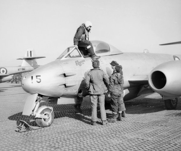 The RAF No. 616 Squadron (code YQ) of the Auxiliary Air Force was selected to be the first unit to receive the new Meteor F.1. The squadron had just moved to Culmhead in Somerset and was currently flying Spitfire VIIs on armed reconnaissance missions over France prior to the D-Day landings and they expected that shortly they would be receiving Spitfire XIVs but little did they know what was in store for them.