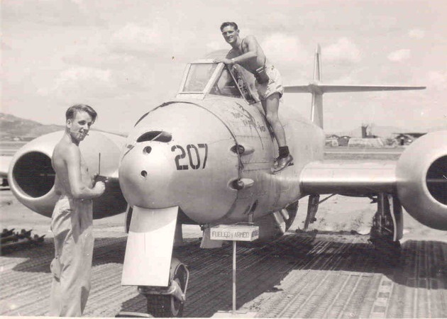 On 6 April 1951, the 77th Squadron flew their last Mustang sorties in Korea and were pulled from front lines for conversion training on the Meteor. There was no Meteor training in Australia, all the training was done at Iwakuni, Japan. The pilots learn how the aircraft worked and how to fly it safely. The twin engines made it a powerful aircraft for its time and provided additional survive ability if one engine was damaged in combat. As part of the training, the pilots had to master single-engine operations in the Meteor which probably saved many pilot lives later in Korea.
