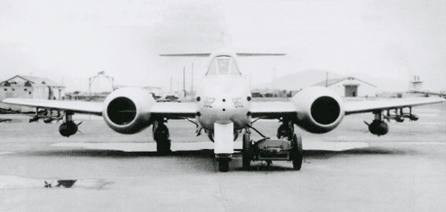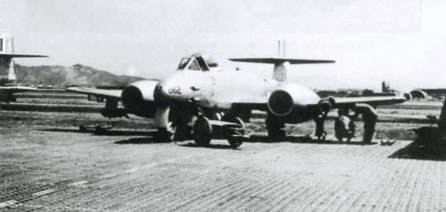 After the heavy losses, the Meteors were withdrawn from ‘MiG Alley’ and were used for airbase protection. Another threat introduced into the air war was ‘Bed-check Charlie.’ Tu-2 bombers, light aircraft and some MiGs ventured south on nuisance night raids over the UN bases. Meteors stood on ready alert and were launched for interception when unidentified bogies appeared on the radar. As a purpose built interceptor with a rapid start up capability and a strong climb performance at lower levels, the Meteor was well suited for airbase protection. The intercept duty was mostly at Suwon, 30 km (18.6 miles) south of Kimpo and was often a boring assignment for the Meteor pilots.