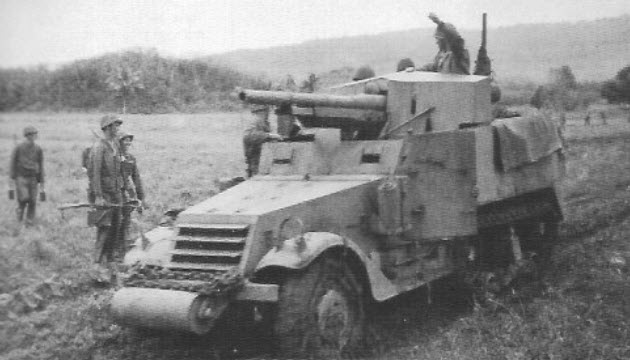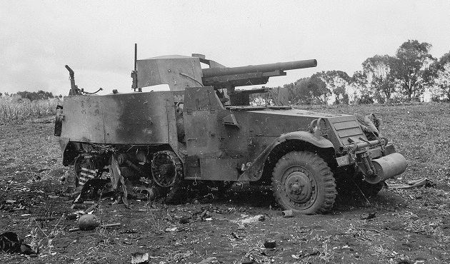 US Marine divisions did not have any tank destroyer units attached but instead each division had a special weapons company which was equipped with a dozen M3 half track 75mm GMCs which the Marines called SPM (Self Propelled Mounts). Saipan was the first Pacific battle since the 1941 Philippines campaign that had extensive encounters with Japanese tanks and on Saipan the SPMs were involved in several engagements against enemy armor. In most campaigns, the SPMs provided fire support to Marine units only when they encountered Japanese bunkers and other heavily fortified positions.