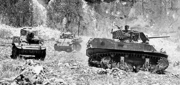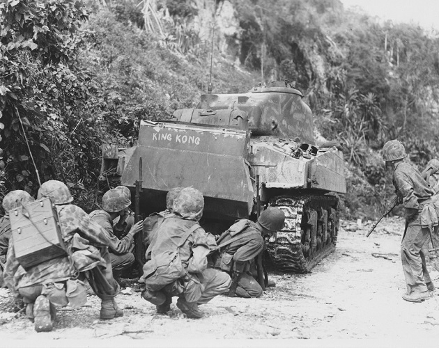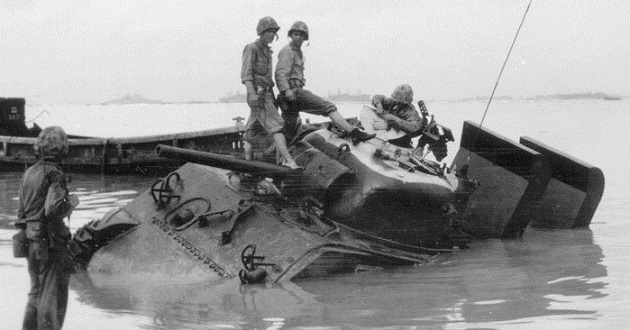 On the afternoon of 15 June 1944, the 2nd and 4th Marine Tank Battalions were landed on Saipan and soon split into small groups to provide fire support to Marine infantry units assaulting entrenched Japanese positions.
