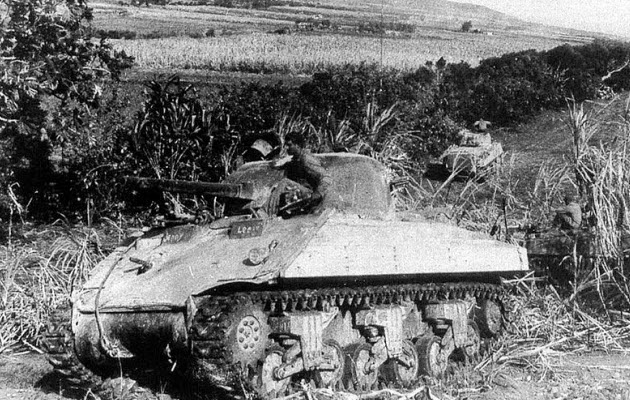 On July 24th, Tinian (south of Saipan) was assaulted by the Marines and supported by M4A2s and M3A1 Satans. Tinian was captured in early August.