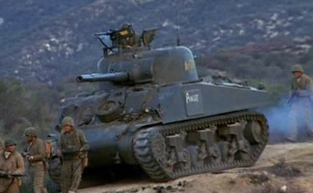 In the movie, a Chrysler built M4A3 Sherman was used since a M4A2 probably was not available. It is close enough since it was only seen in short scenes. In the background of a couple of scenes, a M5A1 Stuart tank is briefly seen.