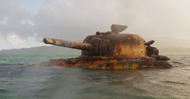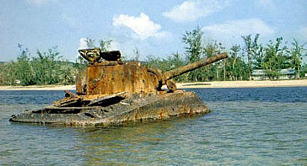 Three rusting M4A2 tanks are stranded offshore of Kilili Beach Park.