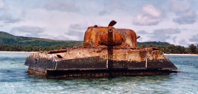 I do not believe the Shermans that are off the coast of Susupe to be M4A2s, but rather M4A4. I am by no means a Sherman expert, but at least the closest one to the beach has only a commander’s hatch and no loader’s hatch. To my knowledge only the M4A4 has that turret.