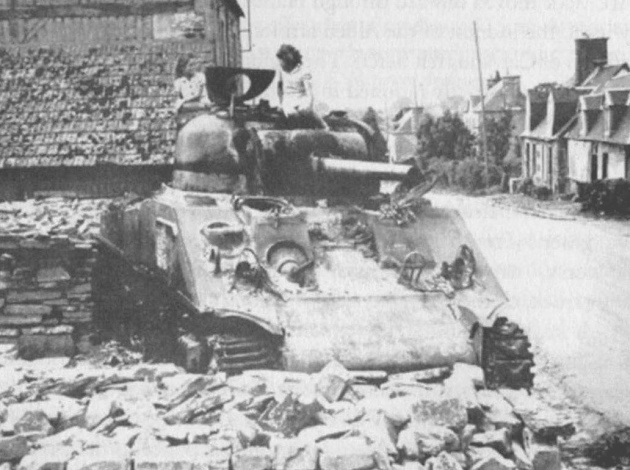 On July 22, the US 2nd and 3rd Armored Divisions began receiving the first 100 M4A1(76) Sherman tanks just before Operation Cobra. This M4A1(76) of the 33rd Armored regiment was near Reffuveille on August 7. Note that it has a Culin hedgerow cutter mounted on the lower front hull.