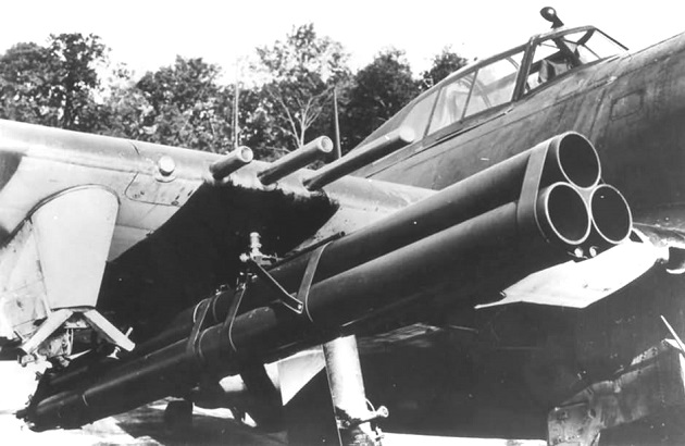 The Focke-Wulf Fw 190A-8s (nicknamed “Würger” or in English “Shrike”) were armed with under-wing WGr 21 rocket-propelled mortars as a Rüstsatz 6 (/R6) field modification (one under each wing), The weapon was developed from the 210mm Nebelwerfer 42 infantry weapon.