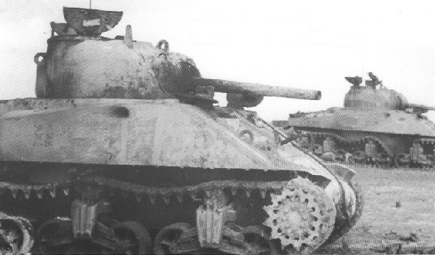 These two M4 Shermans of 2nd Battalion, 1st Armored Regiment most likely belonged to Company F and are marked with large yellow numbers on the hull sides. The closest M4 is number 17 while the M4 in the background is number 9.