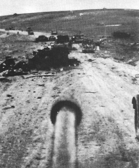 A group of knocked out M3 75mm GMC (Gun Motor Carriage) half-tracks of the 894th Tank Destroyer Battalion were photographed on the Thala road on February 21. Some sources state these vehicles were destroyed by enemy fire but unfortunately they veered off the road into an Allied minefield while withdrawing north during the previous night.