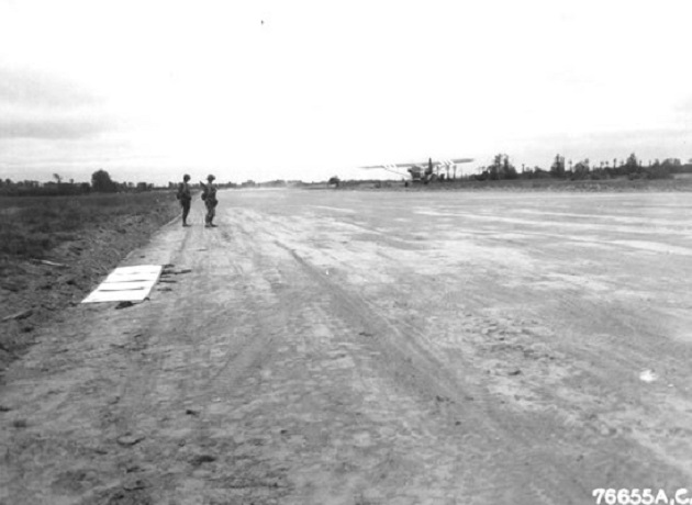 The invasion of Iwo Jima (19 February – 26 March 1945) was code named Operation Detachment. On February 26, two Stinson OY-1 Sentinels of Marine Observation Squadron 4 (VMO-4) from the escort carrier USS Wake Island (CVE-65) landed on the repaired runway. These were first two US aircraft to land on the newly captured airstrip and they did so while under heavy Japanese small-arms and mortar fire. The first OY-1 to land was piloted by Lieutenant Harvey Olson. In time, the mere presence of these small planes flying overhead would make the Japanese gunners to cease fire and button up against the inevitable counter-battery fire which followed.