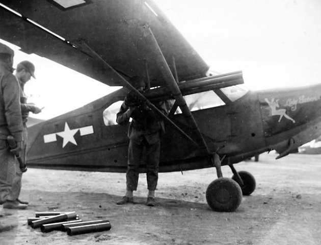 The US Army was not the only ones to mount bazookas on their liaison planes. Three bazookas are mounted on these OY-1s (probably with another three on the opposite side) on Iwo Jima, March 1945.