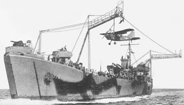 As US forces prepared to invade the heavily defended island of Okinawa, LST-776 equipped with the Brodie system stumbled upon a hidden Japanese defense. Sometime just before the invasion, LST-776 launched L-4s and L-5s to conduct anti-submarine patrols for the US fleet.