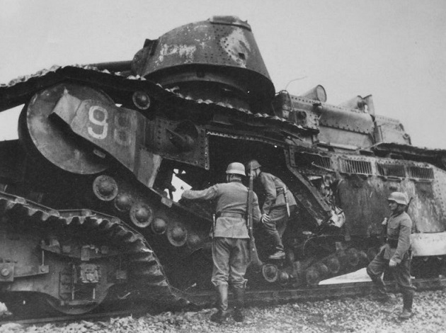 The German standing on top of the left track appears to be examining a spent 75mm shell. Although they were not used in combat, the French probably did test fire the 75mm guns.