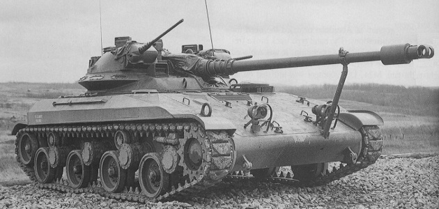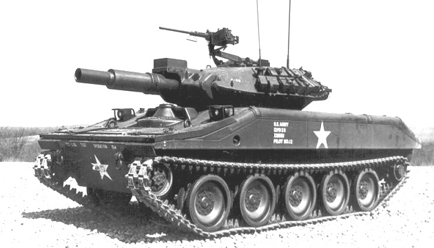 During The Korean War (1950-53), the 76mm M41 Walker Bulldog light tank came into service with the US Army replacing the aging WWII vintage M24 Chaffee light tanks. It was a marked improvement over the M24 but it fell short of the then specifications for a light tank, notably its weight and short range, and thus was considered only an interim tank. In May 1952, specifications for the successor to the M41 were drawn up. By July 1953, proposals had been received from the Detroit Arsenal, Cadillac Motor Car Division of General Motors and Aircraft Armaments, Incorporated (AAI). The AAI design, the T92 gun tank armed with a 76mm gun, was selected for further development and the first pilot tank arrived at the Aberdeen Proving Grounds, Maryland, for testing on 2 November 1956. The T92 was a very compact vehicle with less volume to protect allowing the weight of the armor to be reduced which also had the further benefit of a being a small target. The T92 was much smaller than the M41. Despite a few bug corrections, testing went well and it was expected the T92 would begin full-scale production by mid-1962. However, in 1957, those plans had unexpectedly changed.
