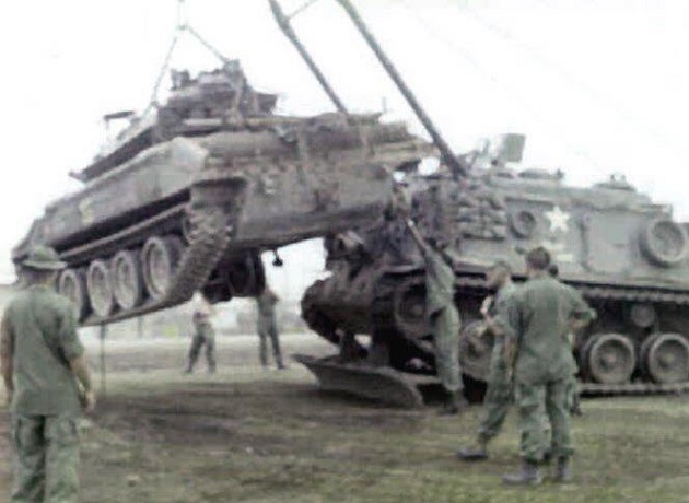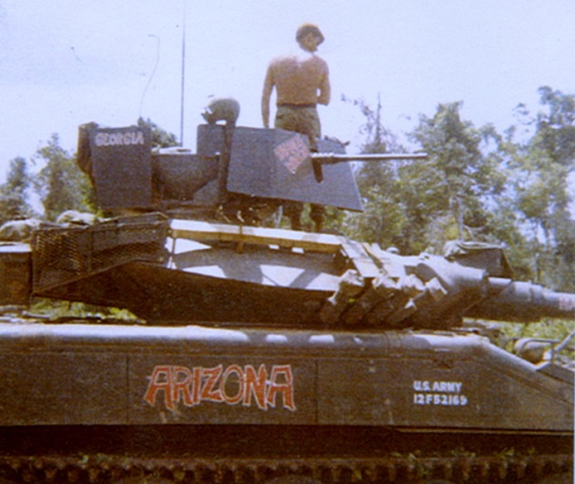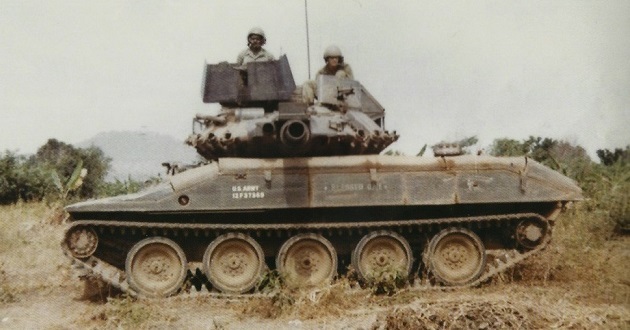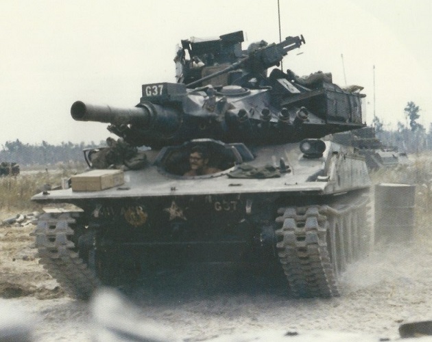 M551 A-25 is parked in front of M113 ACAVs of the 2nd platoon. It was probably named after the 1968 Disney movie “The Love Bug” starring Dean Jones, Michele Lee and Buddy Hackett which is about an anthropomorphic racing Volkswagen Beetle named “Herbie”.