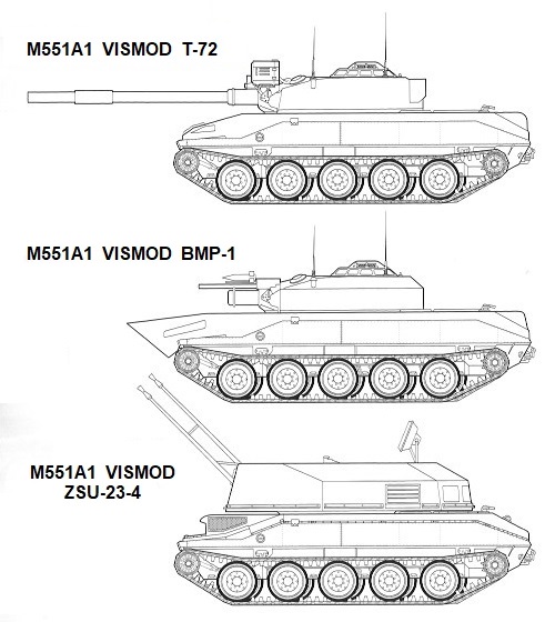 M551 (NTC)(National Training Center) – Modified mock-up enemy vehicles for training.