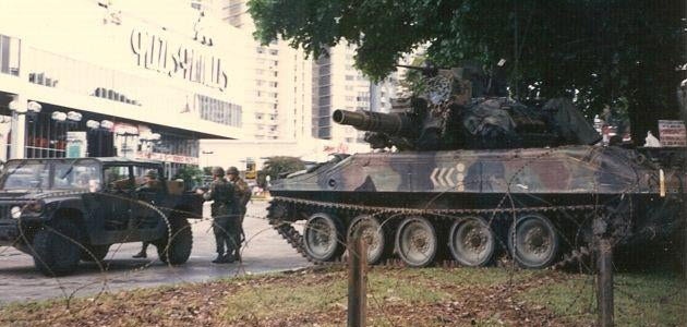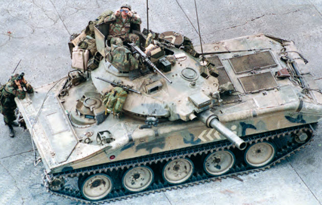 A M551 at a roadblock in Panama City on 1 January 1990. This is probably the same M551 in the above photo.
