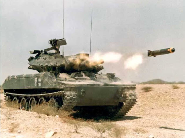 XM551 Pilot #12 launches a Shillelagh anti-tank missile during testing in October 1967.