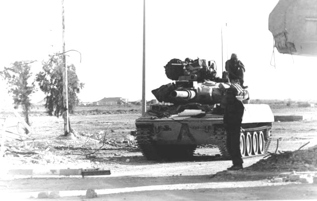 M551A1 Sheridan of A Troop, 3-73rd Armor guarding the main gate of Tallil Air Base in southern Iraq on 3 March 1991 the day after the cease fire.