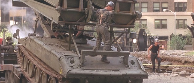A M551 Bridge Layer is in the scene where the villain “Simon” (Jeremy Irons) and his cohorts masquerading as construction workers excavate Wall Street in New York city to break into the basement vaults of the Federal Reserve Bank of New York Building which hold $140 billion of gold bullion. The bridge section was placed in the dug trench and used as a ramp for a tunneling machine to drive down into the sewer seen in the next scene.