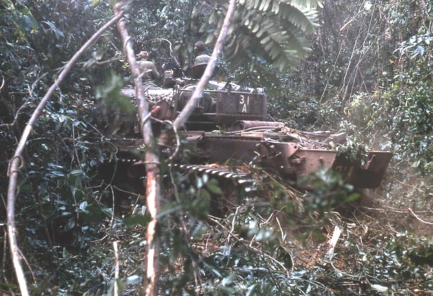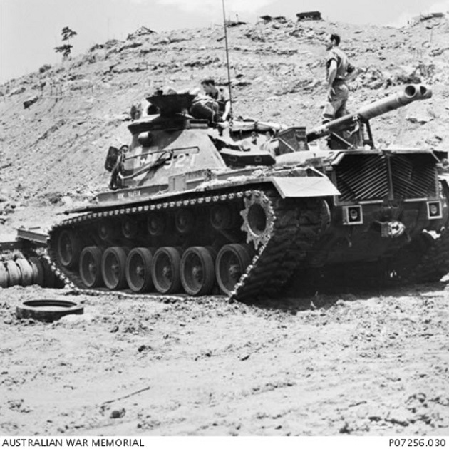 Operation Hermit Park was an assault on an enemy bunker system. The attack force consisting of centurion tanks, an APC troop and 1 Platoon, V6 Company (4RAR/NZ) crossed the start line and headed towards the objective. Not long after the advance began, a leading Centurion ran over a buried 40-gallon (151.4 Liters) drum. It caused the trooper’s eyes in the surrounding area to water profusely and it made their skin itch and burn. The drum or cylinder probably contain tear gas. The attack force advanced about 50-70 meters (54 to 76 yards) towards the bunker system when the forward left Centurion received a direct hit from an RPG round. The RPG hit the top of the turret around the area just in front of the tank commander’s cupola. Both the commander and his operator were immediately wounded as both turret hatches were fully open. Smoke was coming out of the turret with no sign of crew movement. Once the wounded were evacuated, the attack continued in the same direction towards the objective. The forward Centurions swung left into a line in front of the infantry and fired canister, 50 and 30 caliber into the general direction. The fire fight raged for about 15 minutes. The fire was intense with rounds flying in every direction. The surrounding vegetation above knee height was totally shredded.