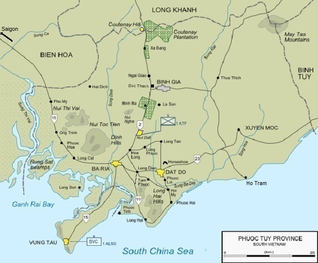 In March 1968, Operation Pinnaroo was launched which was a “reconnaissance-in-force” mission. The objective was to capture and destroy bases of the People’s Liberation Armed Forces (Viet Cong or VC) in the Long Hai hills. The Viet Cong designated this area the Minh Dam Secret Zone. Its natural caves and subterranean streams provided a haven from which they could launch raids and propaganda missions into the surrounding countryside.