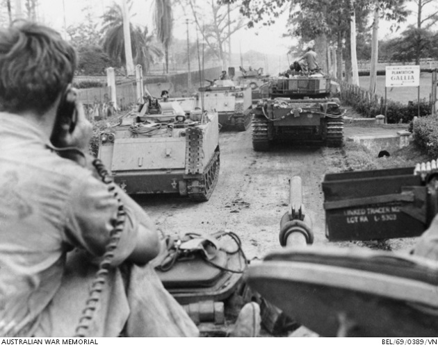 The 1 ATF commanded the Australian and New Zealand Army units in South Vietnam and was based at a rubber plantation at Nui Dat along Route 2, 8 km (5.0 miles) north of Bà Rịa in the Phuoc Tuy Province. In 1967, the Royal Australian Armoured Corps (RAAC), 1st Armoured Personnel Carrier (APC) Squadron was transferred to A Squadron, 3rd Cavalry Regiment in South Vietnam. Although they successfully conducted combat operations in their areas of operations, reports from the field stated that their lightly armoured M113A1 APCs were unable to force their way through dense jungle limiting their offensive actions against enemy forces and they did not have enough firepower to deal with enemy bunkers. The Australian government, under criticism in Parliament, decided to send a squadron of Australian Centurion tanks to South Vietnam.