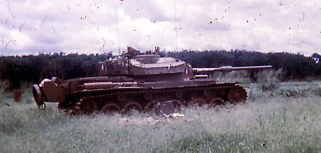 In late 1970, M48A3 tank 92.T was damaged by a mine during a mine clearing operation which wounded the crew. The blast had broken the left track and blown off the first two road wheels. It probably was a command detonated mine.