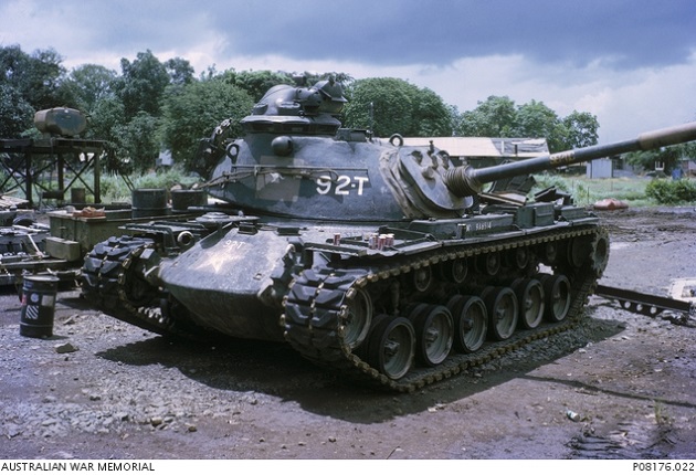 A Centurion bridge layer, believed to be call sign 92B, was damaged while returning from FSB Picton, in the north of Phuoc Tuy Province in 1969.