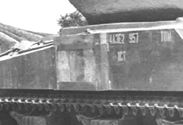 All the additional armor on the M4A3E2 increased its weight by over 11000 pounds (4989.6 kg) in comparison to the standard M4A3. The increased pressure on the ground was compensated by extended end connectors “duck bills”, which were added to the outer edge of the tracks increasing the width of the tracks. The specific pressure of the M4A3E2 with the extended T48 tracks was 14.2 psi, which was even lower than that of the lighter M4A3 tank, 14.3 psi. Sand shields were fitted that were extended from the hull so that they fit over the wider tracks.