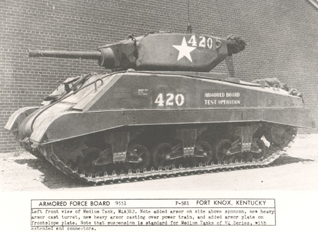This M4A3E2 was tested by the Armored Force Board at Fort Knox, Kentucky. The number 420 is the last three numbers of the tank’s serial number 50420.