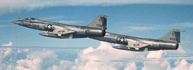 Like most USAF aircraft the F-104 acquired nicknames. US pilots initially called the F-104 the “Oh-Four”, but when the North American F-100 Super Sabre began to be referred to as the “Zip-Zilch” (for “Zero-Zero”), the Starfighter acquired the similar nickname “Zip-Four”; this was eventually shortened to “Zipper” or “Zip”. Over time this nickname came to be associated with the aircraft’s impressive speed and acceleration. It was also called the “Manned Missile”.
