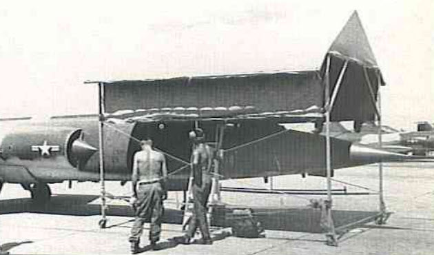 Mobile shelters provided the ground crew cover from the hot sun and rain while they serviced the F-104Cs.