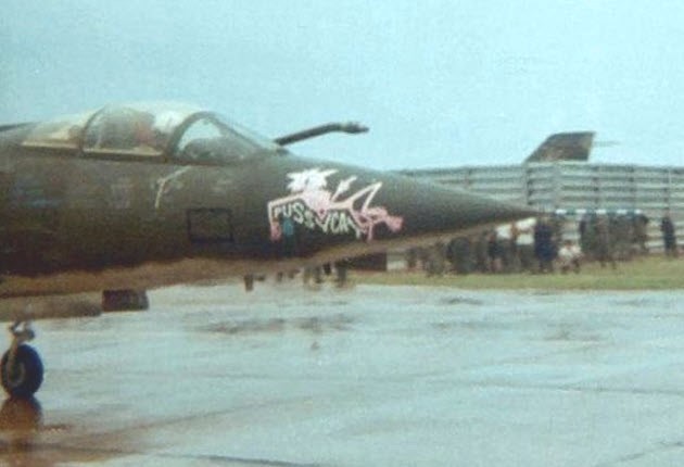 In March 1967, it received the risqué nose art “Sex Machine”, seen here with pilot Major Hugh B. Spencer.