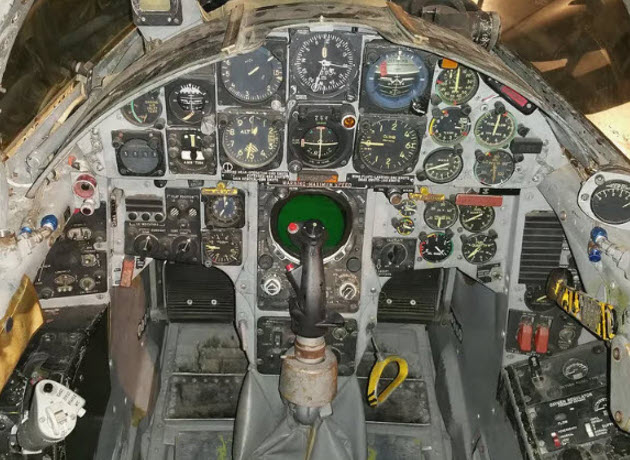 The cockpit of the F-104C Starfighter.
