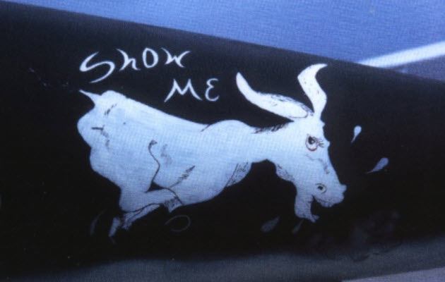 The Missouri mule was painted on his aircraft nose with the name “Show Me”.