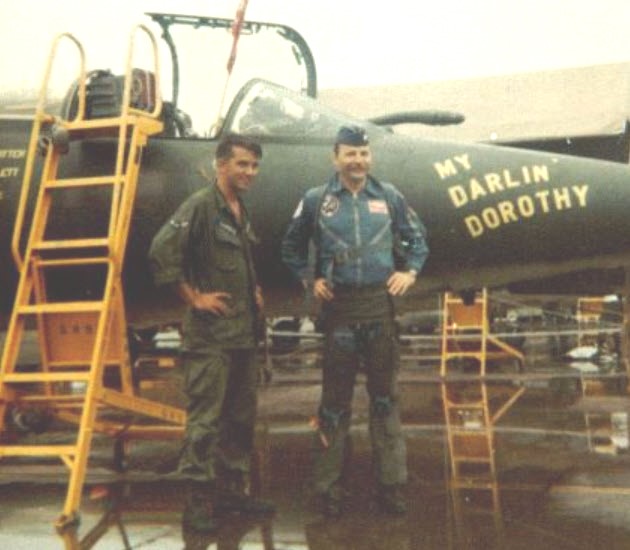 In the early 1960s, USAF test pilot and engineer, Lieutenant Colonel Everest Ernesto “Rich” Riccioni, Jr. developed the double attack system for the F-104. The Starfighters flew in pairs as a mutually supporting team, swapping roles as “shooter” in order to deny the enemy aircraft the chance of escape or the opportunity to turn and engage their attackers. They also concentrated on vertical maneuvering, using the F-104’s superior rate of climb to attack from below and then reversing for a second attack from above. This tactic went against the then standard USAF “fluid four” fighter formation which used four planes, divided into a lead element and a second element of two planes each, operating together. The two pairs supported each other, but the flight leader usually made all the decisions for all four planes and was the primary shooter. Regardless, the 497th TFW was the first USAF wing to adopt the “double attack” tactics.
