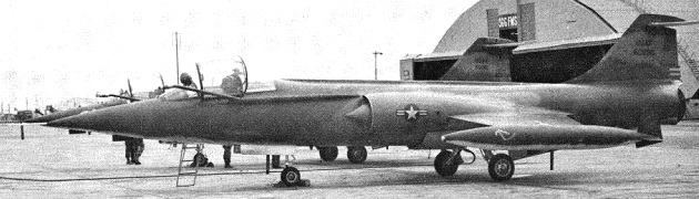 F-104C 57-0928 and F-104C 56-0912 on a Big Eye mission. The F-104 was too fast for the slow flying EC-121D so the F-104 pilots used a “weave” maneuver flying near Mach 0.9.